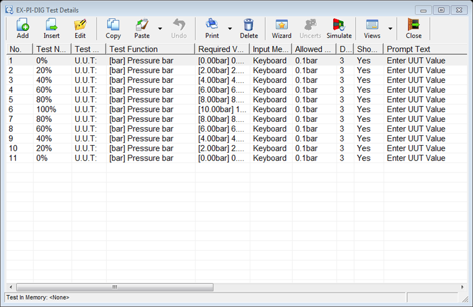 Using the following method a test cycle can be repeated. The final measurement result for each repeated test is recorded as either the mean, maximum, minimum or RMS. Note, each individual test value entered is not recorded.