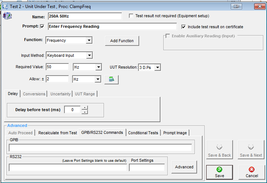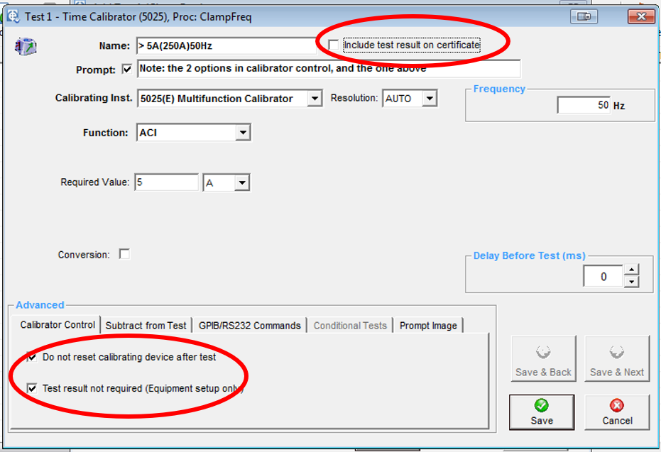This is a ‘setup only’ test. It will not appear on the certificate and the calibrator output will remain on for the next test. The allow ± and input method controls will disappear. This data is not required for a ‘setup only’ test