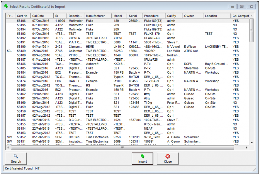 Select the results database you wish import from in the normal way. Select the certificates you wish to import. If you are importing all the certificates make sure all rows are selected by scrolling up and down the list.
