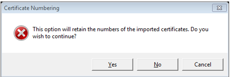 Normally when importing certificates, these are assigned the next available number in the sequence. If deploying a new results database, after an upgrade for example, it may be necessary to retain the certificate numbers from the imported data.