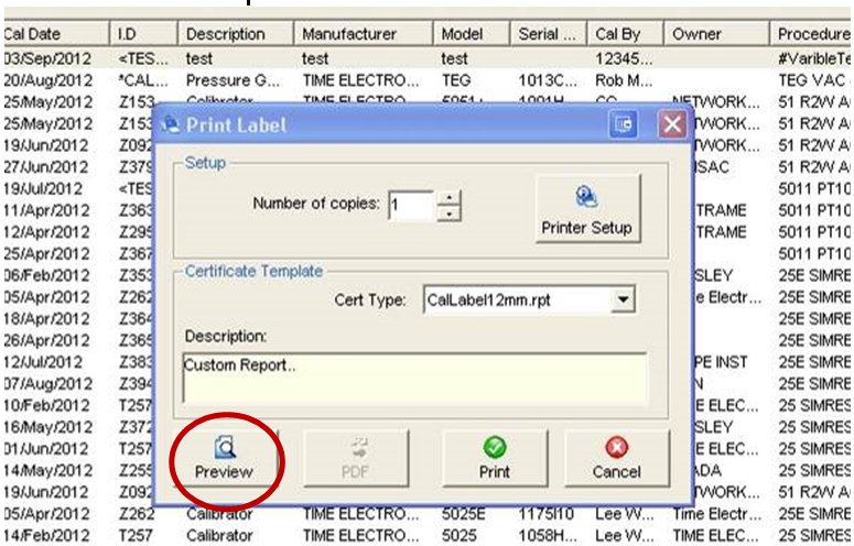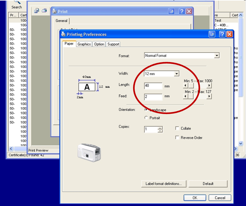 When using a label cartridge which is a different size than specified in the default printer settings, the following instructions should be followed.