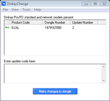 An update code will be email by return. Copy and paste this code (include spaces) into the ‘Enter update code here’ window in DinkeyChange app and click ‘Make changes to dongle’.