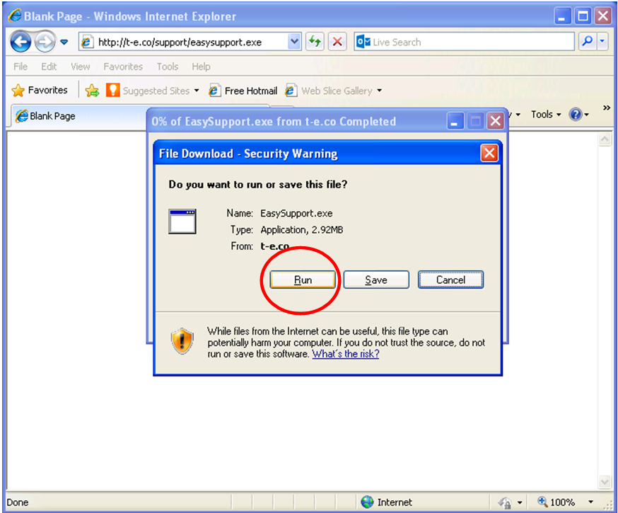 2. Select Run. Depending on your PC you may need to allow or unblock .exe downloads.