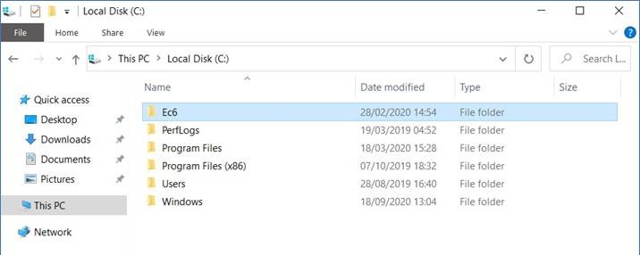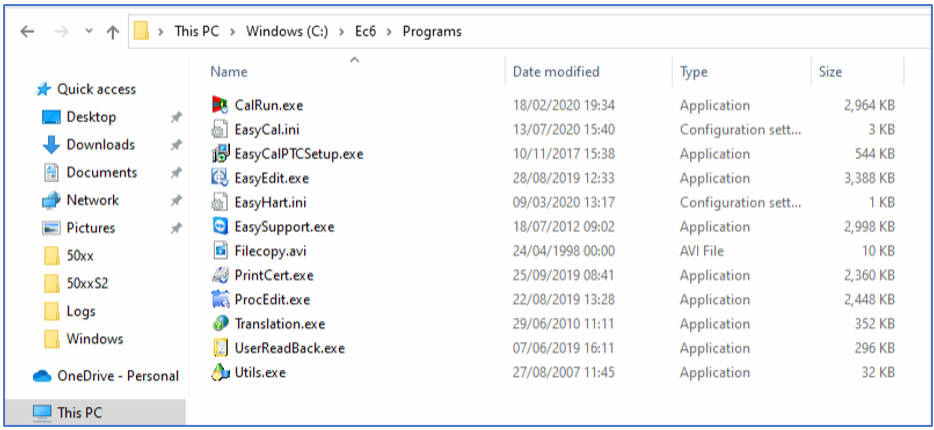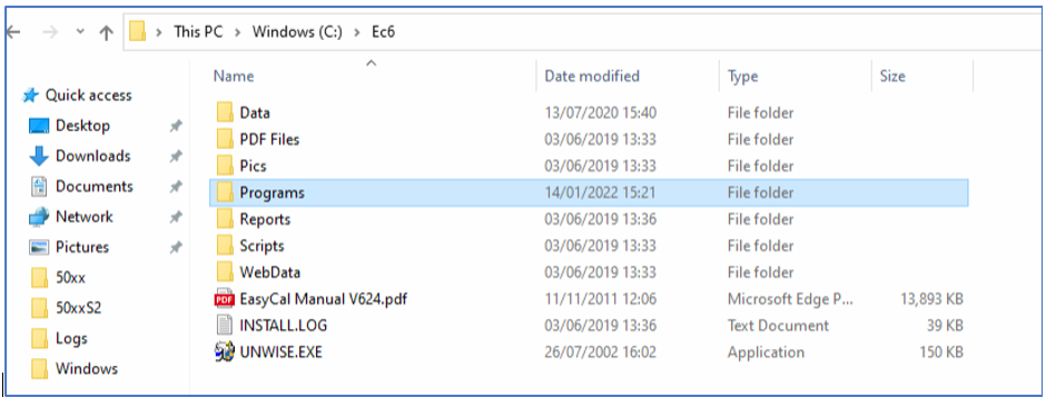 - Locate the EasyCal folder (directory). If this is not C:\Ec6\, please contact Time Electronics.