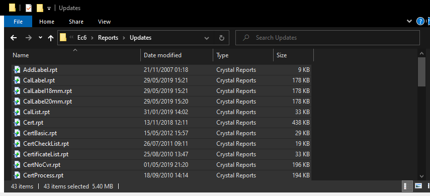 - Browse the reports folder (C:\Ec6\reports\) and open the folder named Updates (C:\Ec6\reports\Updates).
