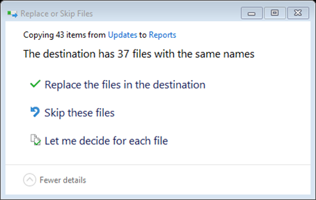 - When prompted, selected ‘Replace the files in the destination’If the Reports are located on a network share, paste these files to that location.