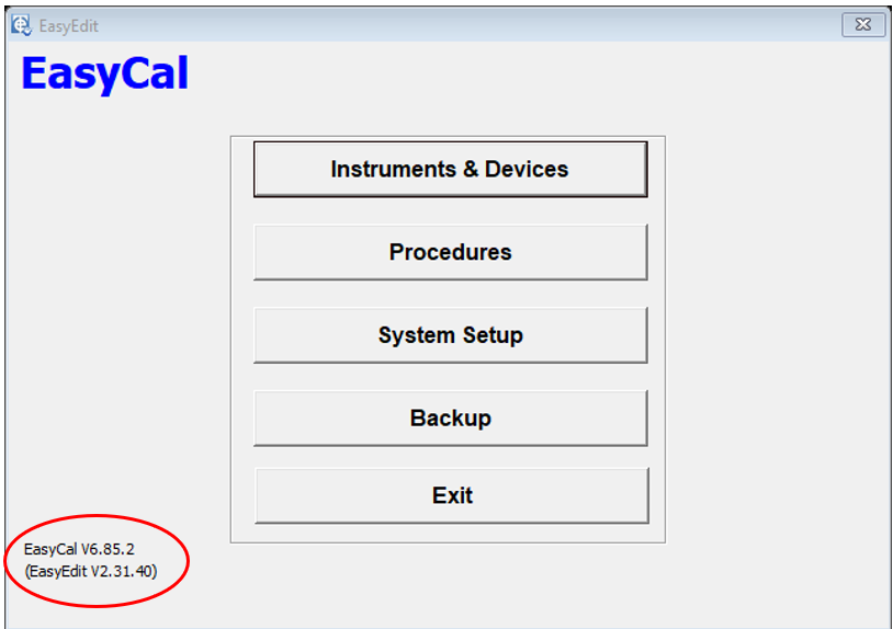 Each release of a EasyCal suite is given a new release version number as identification. The components that make up EasyCal can also have version numbers, in particular the programs (EasyEdit, CalRun, PrintCert, EasyAdmin) as well as included report files (Ec6/Reports/*.rpt). The EasyCal suite can be identified by the version number that is visible in EasyEdit application:
