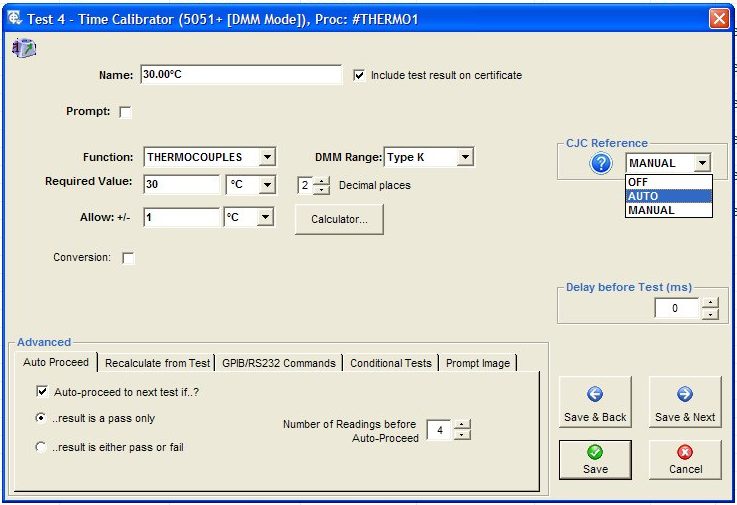 All subsequent tests will use this value unless a new value is entered or the CJC option has been set of AUTO or OFF in the procedure.