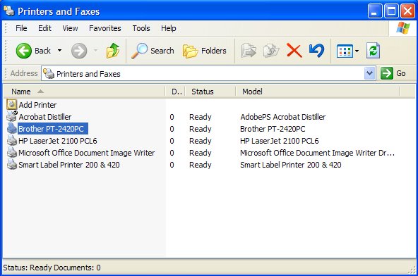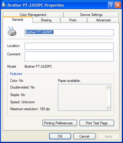 To correctly print a label using a P-Touch label printer with EasyCal, the following windows settings must be applied.