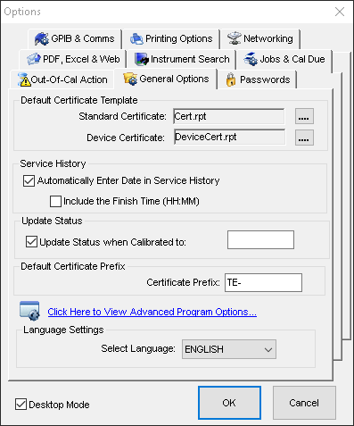 For this feature to work seamlessly, the individual applications such as PrintCert and CalRun should no longer be used. Instead, the ‘Calibrate’ and ‘Certificate’ features using the Desktop Mode should be used.