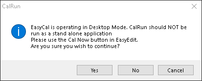 To enable the new EasyCal operating mode, tick the desktop mode check box found in the bottom corner of the options screen. (EasyEdit > System Setup > Options) After this box is ticked EasyEdit must be restarted.