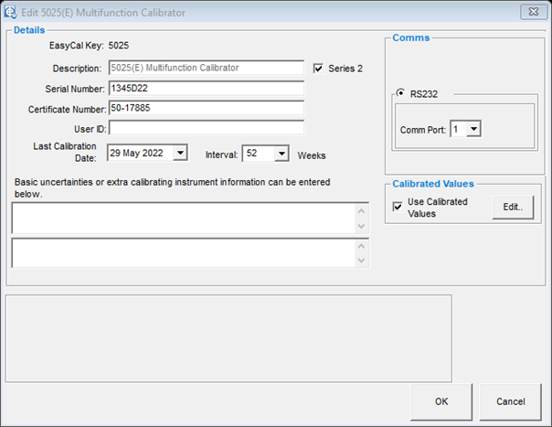 If you are using a 5025x series 2 the series check box in calibrating instruments must be ticked. This will enable the TurnCoil conversion feature and 4 wire resistance for the 5025C Series 2.