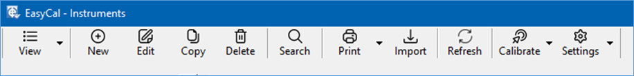 With the new operating principle all actions are performed from this screen and the menu system is no longer used. The individual applications such as PrintCert and CalRun are no longer run independently, but instead accessed via the View and Calibrate toolbar button menus.