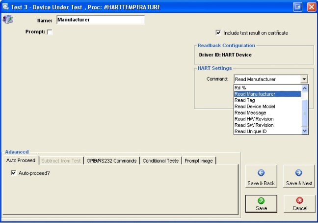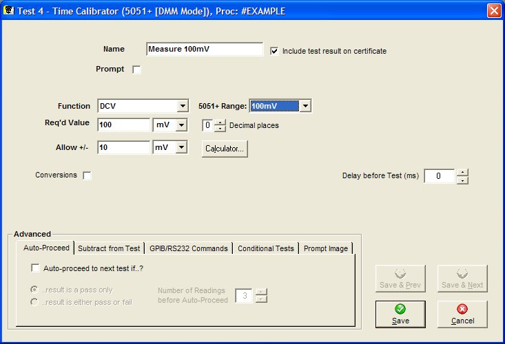 For 5051 DMM Mode, 5075 and Readback tests the option to ‘Auto-Proceed’ is available.