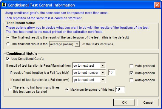 EasyCal can repeat the same test or group of tests using Conditional Gotos option
