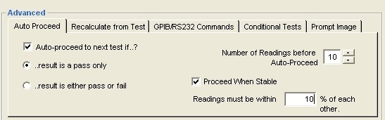 This means that the procedure will automatically step to the next test depending on the conditions set in this window.