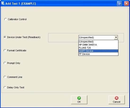 If required, a separate D.U.T test can be performed. This is normally the case when a communication protocol is used, for example HART or a Readback Driver has been specified (see chapter 8 – Readback drivers). Usually the test prior to the DUT test is a calibrator ‘setup only’ test.