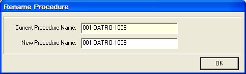 Here you are presented with a list of current procedures. Select the procedure you wish to duplicate and press OK. You will then be asked to give the new procedure a name. Once the duplication is complete the procedure can be edited in the normal manor.