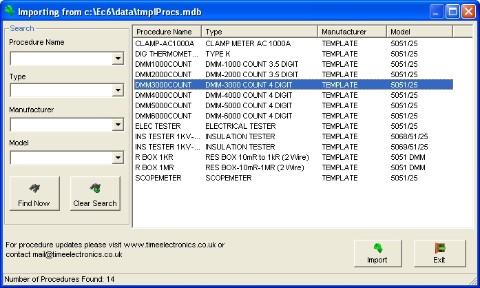 These can be imported and modified as required. Select the procedure required from the listing window, or alternatively search for the procedure in the normal manor. The original will remain unchanged. For a full listing see Error! Reference source not found.