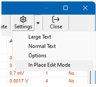 To aid the procedure editing process certain data can be edited ‘In Place’ directly from the test list.