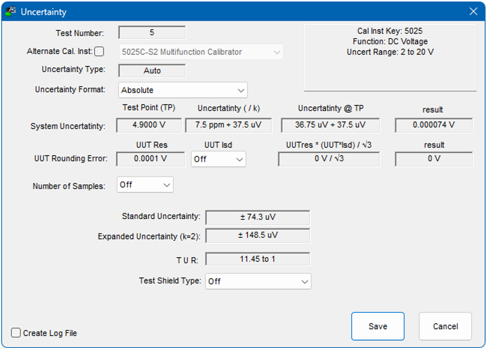 The uncertainty for each test can be reviewed by viewing the test data. The value can be manually edited if required.