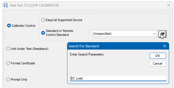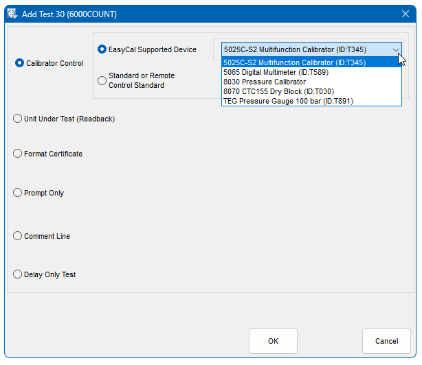 - Standard or GPIB/RS232 Device – These tests are specified for test/control where EasyCal’s internal drivers are not used.