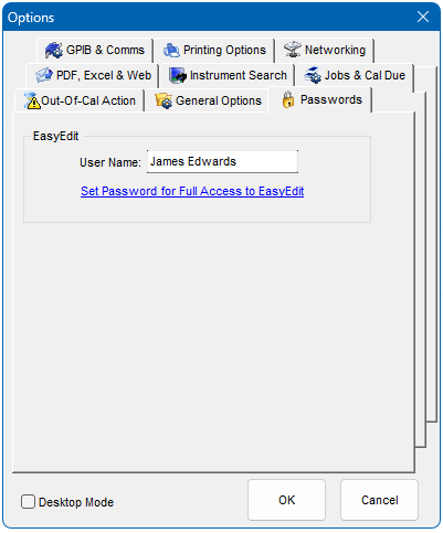 A password can be set up to restrict access to the EasyEdit. By default the password is “time”. The password can be changed or disabled as required